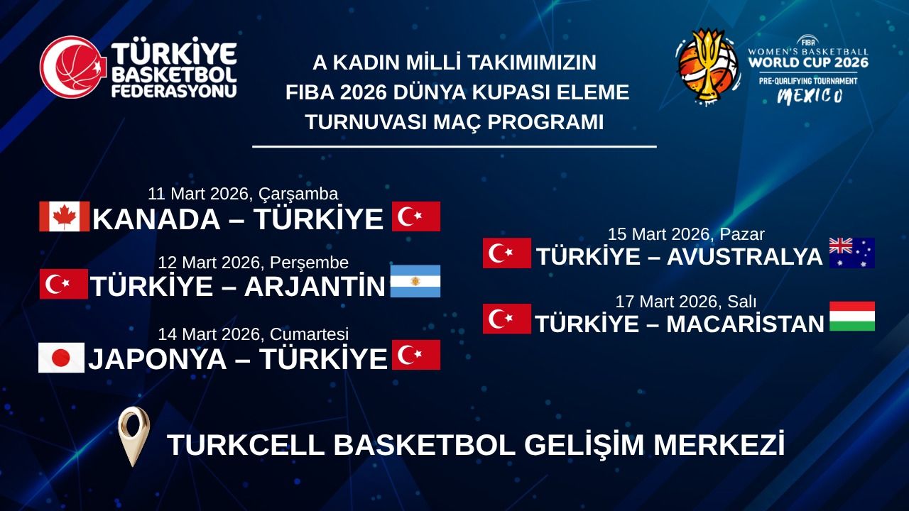 Kadın A Millî Basketbol Takımımız, FIBA 2026 Dünya Kupası Elemeleri kapsamında sahaya çıkmaya hazırlanıyor. Türkiye Basketbol Federasyonu’nun yaptığı açıklamaya göre, millî takımımızın İstanbul penceresinde oynayacağı maç programı belli oldu. Heyecanla beklenen karşılaşmalar, 11-17 Mart 2026 tarihleri arasında İstanbul’da gerçekleştirilecek.