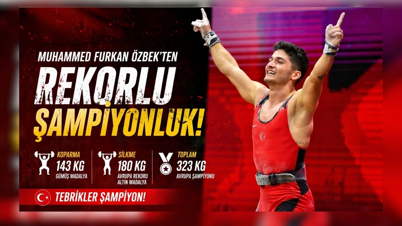 Milli halterci Muhammed Furkan Özbek, Gürcistan’da düzenlenen Avrupa Halter Şampiyonası’nda erkekler 65 kilo kategorisinde zirveye çıktı. Koparmada 143 kiloyla gümüş madalya kazanan Özbek, silkmede 180 kiloluk kaldırışıyla Avrupa rekoru kırarak altın madalyaya ulaştı. Toplamda 323 kiloya ulaşan milli sporcu, bu derecesiyle Avrupa şampiyonluğunu elde etti. Aynı sıklette yarışan bir diğer milli sporcu Ferdi Hardal da iki bronz madalya kazanarak Türkiye’nin turnuvadaki başarısına katkı sağladı.